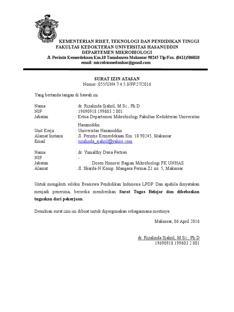 Isi Surat Izin Mengambil S2 di Instansi Pemerintah